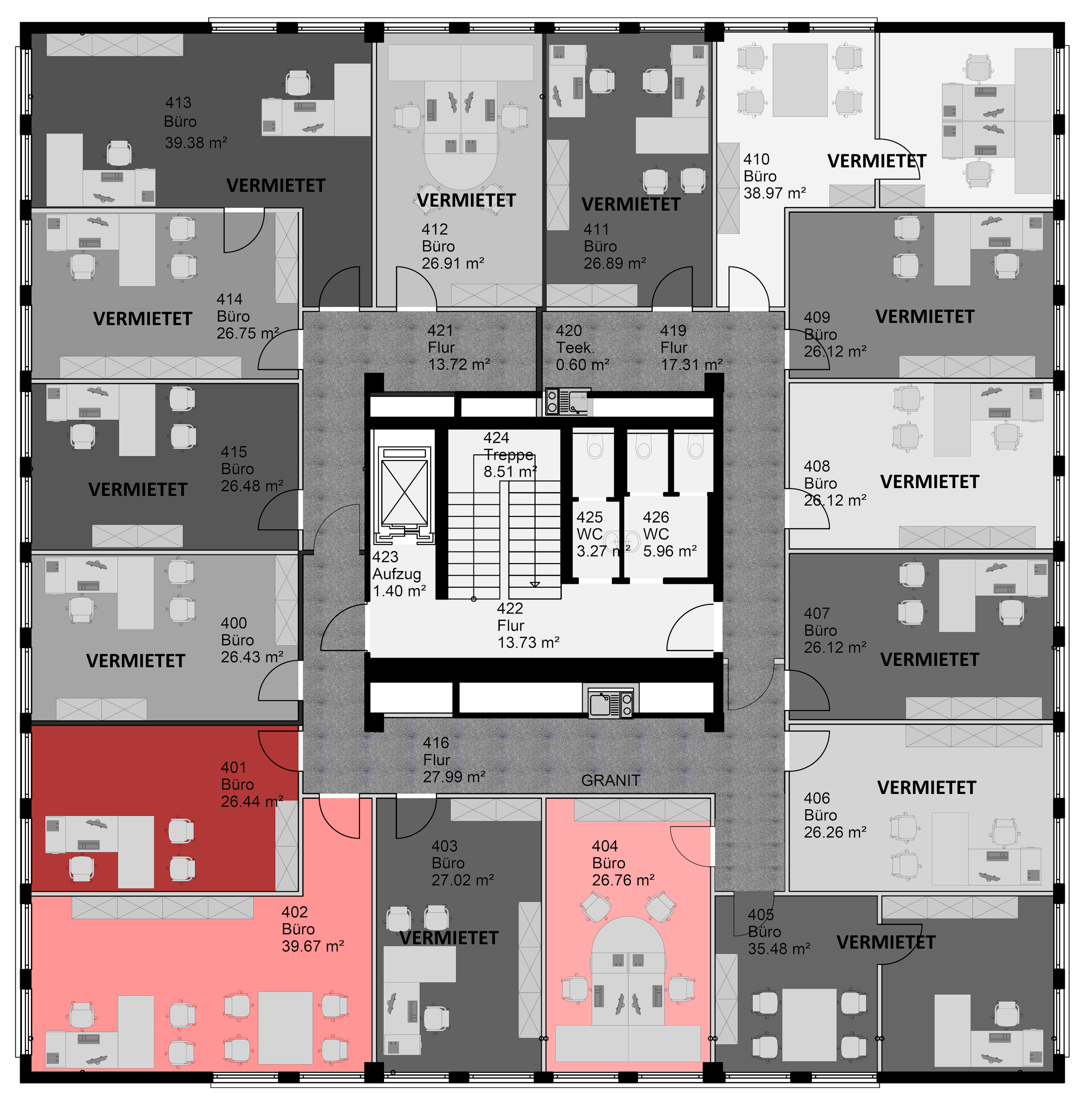 Fläche: 26,43 m²/ 26,44 m²/ 39,67 m²