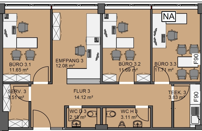Textilbelag: Objekt-Schlingenware anthrazit, schallabsorbierend, trittschalldämmend, antistatisch, stuhlrollengeeignet in den Räumen: Büro und Besprechungsraum